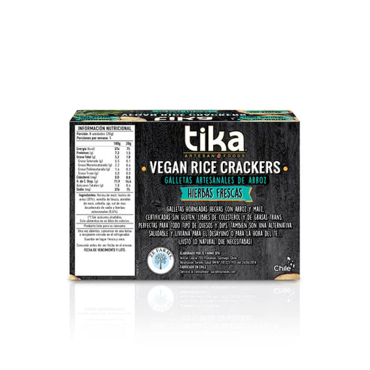 TIKA VEGAN RICE CRACKERS HIERBAS FRESCAS VEGANA SIN GLUTEN 100gProveedor:TIKAPrecio habitual $790 CLPPrecio habitualPrecio unitario / por$1.490 CLPPrecio de oferta $790 CLPOferta