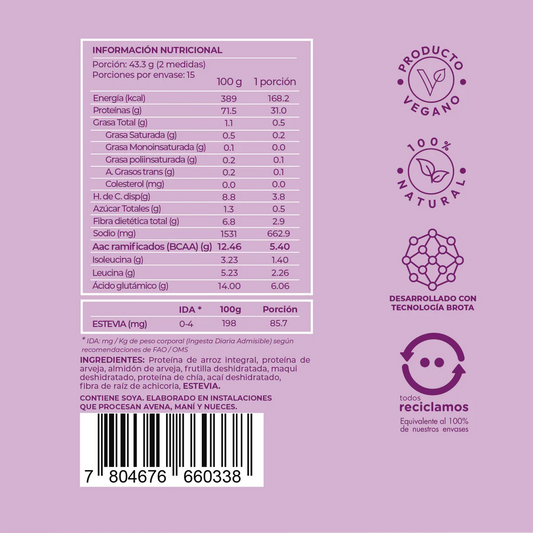PROTEINA V-PRO BERRY FIT VEGAN 650gProveedor:BROTAPrecio habitual $18.990 CLPPrecio habitualPrecio unitario / por-