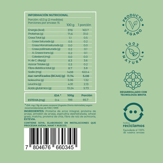 PROTEINA V-PRO GREEN ENERGY VEGAN 650gProveedor:BROTAPrecio habitual $18.990 CLPPrecio habitualPrecio unitario / por-