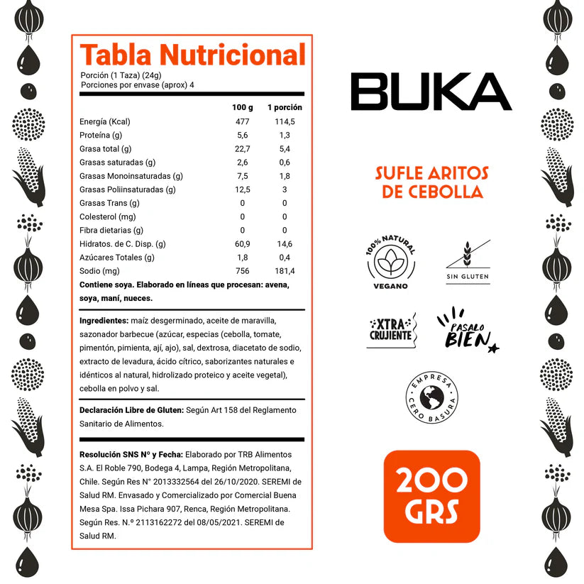 BUKA ARITOS DE CEBOLLA BBQ SIN GLUTEN VEGANO 200g