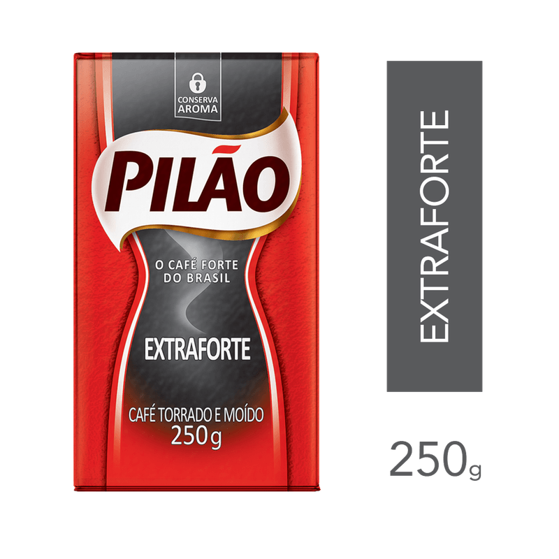 Café Pilão Extra Strong, intensidad 10, disponible en la versión al vacío, combina el aroma y el sabor del café Arábica, con la fuerza del Robusta. Todo esto en un tueste fuerte, que proporciona una bebida fuerte y llamativa, especialmente desarrollada para ti.