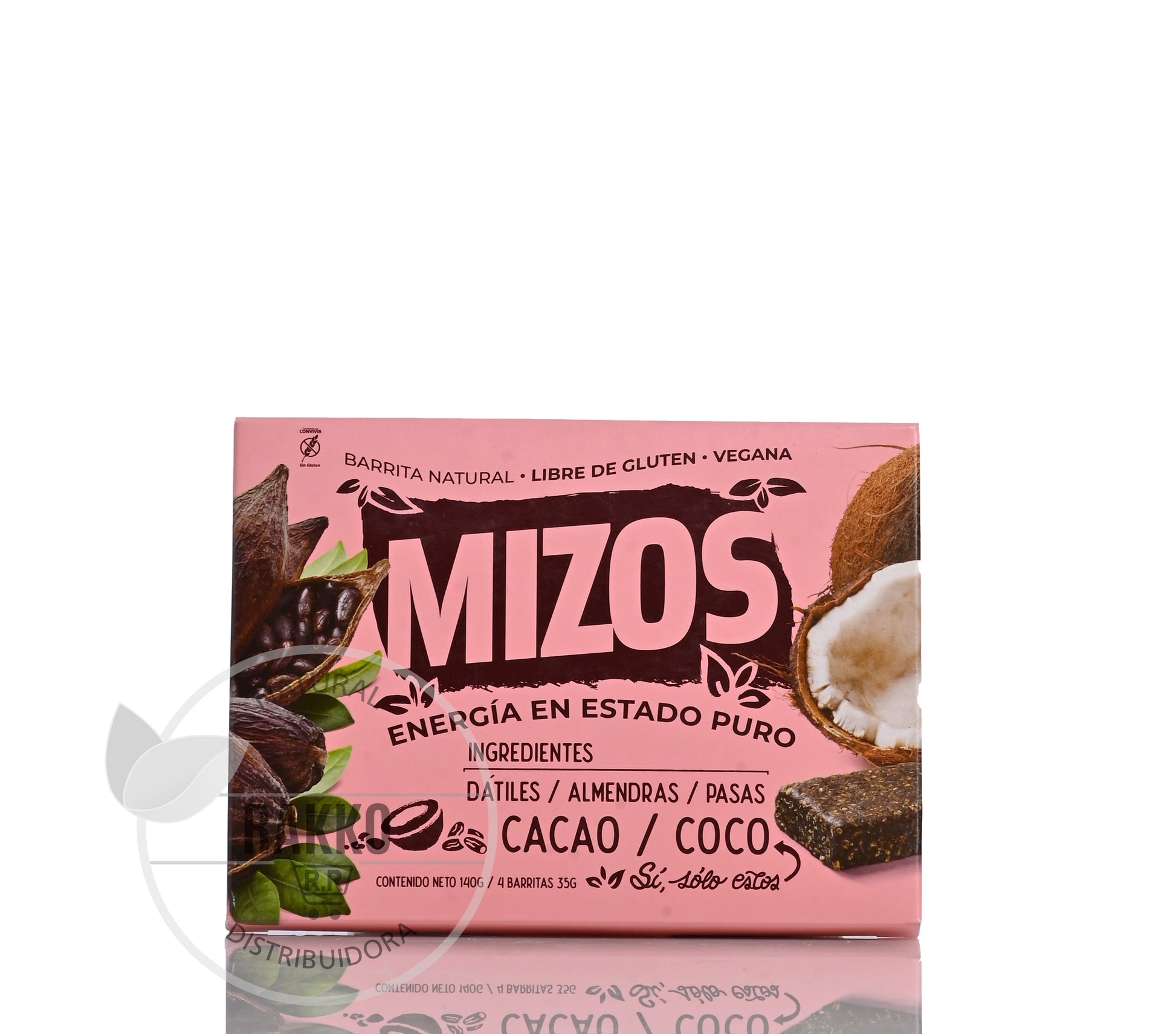 MIZOS BARRITA NATURAL SABOR CACAO - COCO - DISPLAY 4un
