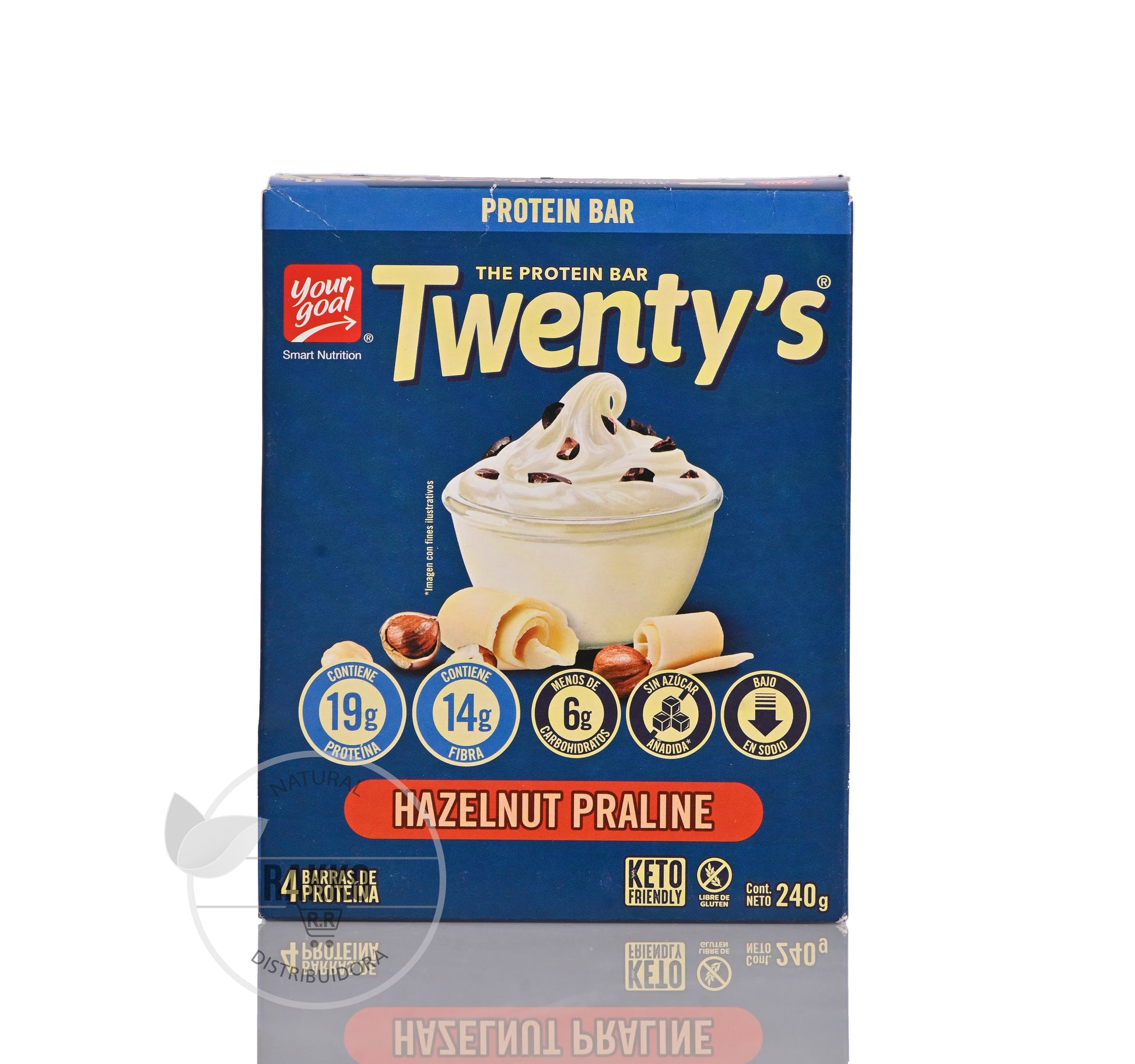 Una receta de lujo donde el sabor y la nutrición se combinan a la perfección. Twenty's Hazelnut Praline, el sabor de la mejor selección de avellanas, bañada en un suave chocolate blanco, con un topping de crujientes cacao nibs. Su alto contenido de proteína y fibra, te entregará saciedad por horas. Son libres de sellos, sin azúcar añadida y libres de gluten. La opción perfecta para dietas hipocalóricas, hiperproteicas, bajas en carbos. ¡Let's Go!