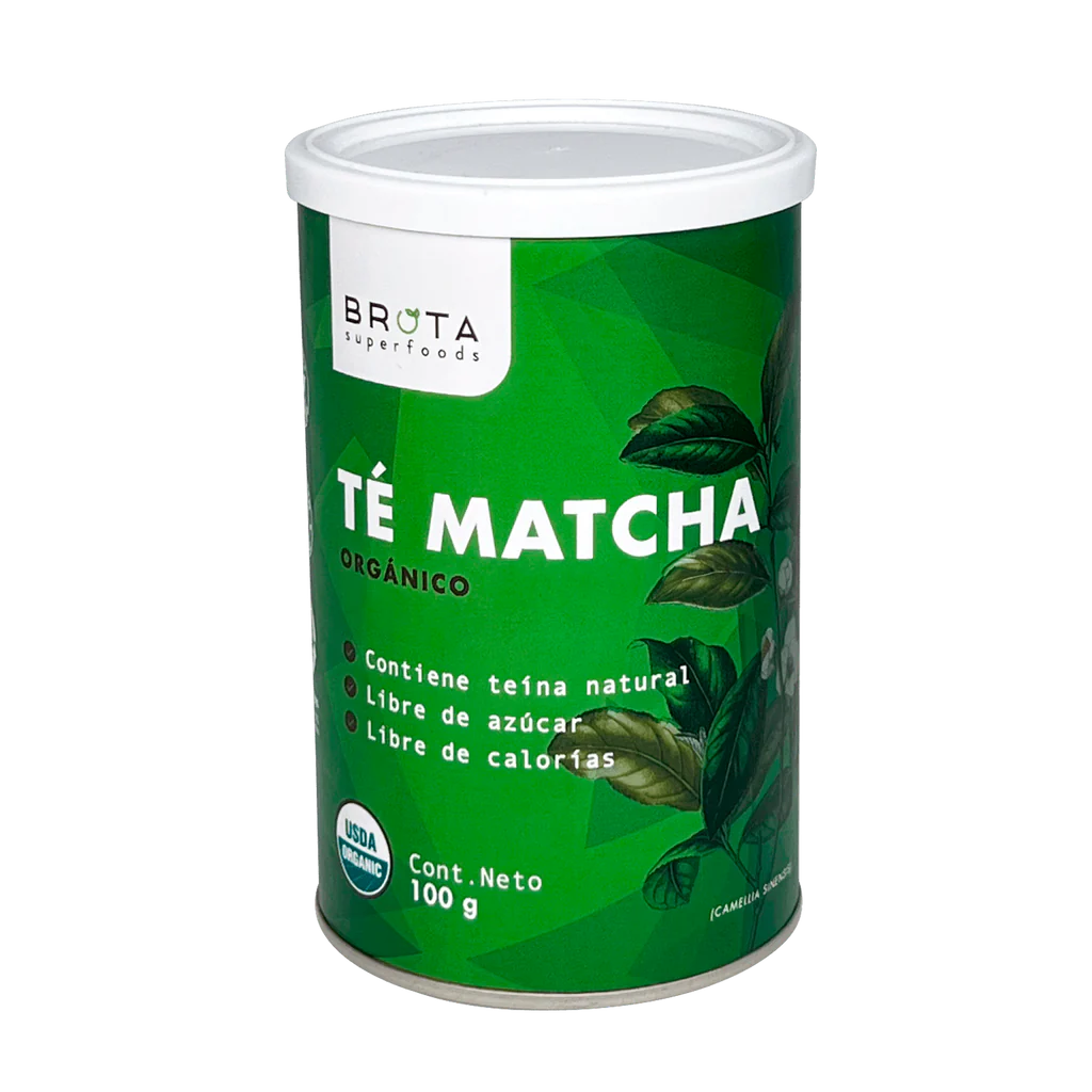 El té matcha es un polvo que se obtiene a partir de las hojas pulverizadas más finas y tiernas del té verde. El té matcha Brota es un estimulante al contener teína y contiene clorofila. Es orgánico y viene en formato en polvo de 100 gr.