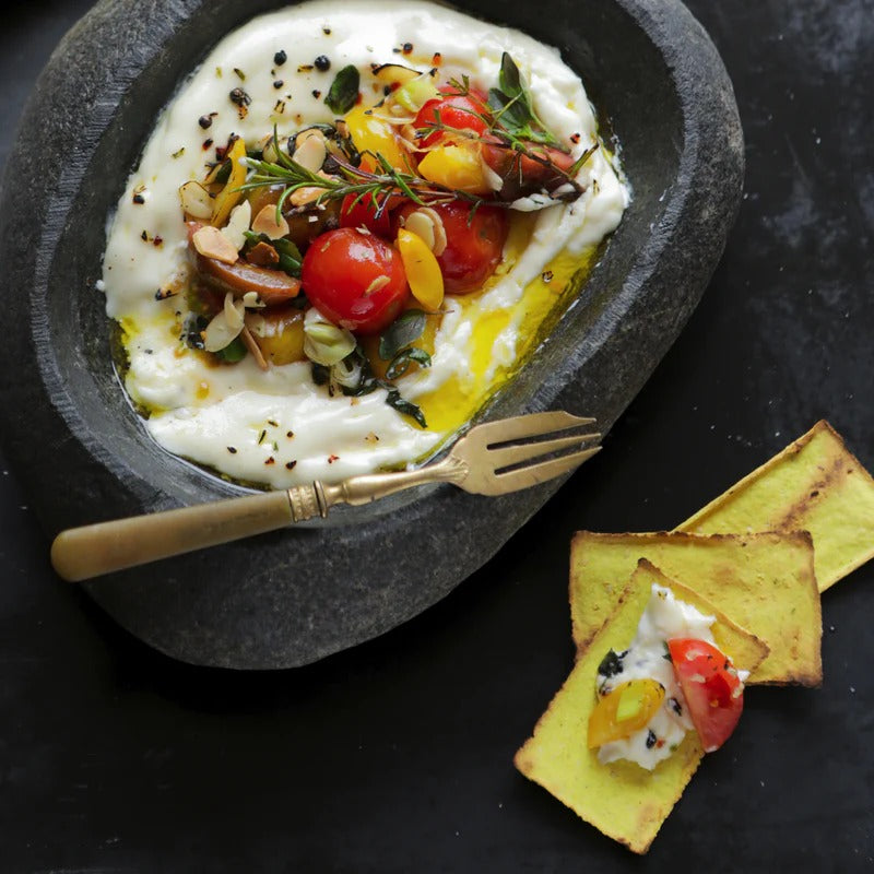 La pareja perfecta para todo tipo de quesos, pâté o antipasto... Hechas con harina de maíz, cúrcuma, semillas de sésamo y una pizca de sal de mar.